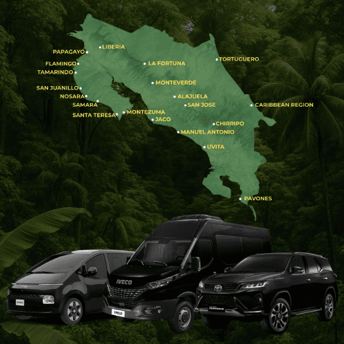 Our fleet of luxury 4×4 vans is designed to offer unparalleled comfort and safety, tailored for the diverse terrain of Costa Rica. Our professional drivers, who are both local and fluent in English and Spanish, bring over 6 years of experience in the tourism transport sector to enhance your travel experience.